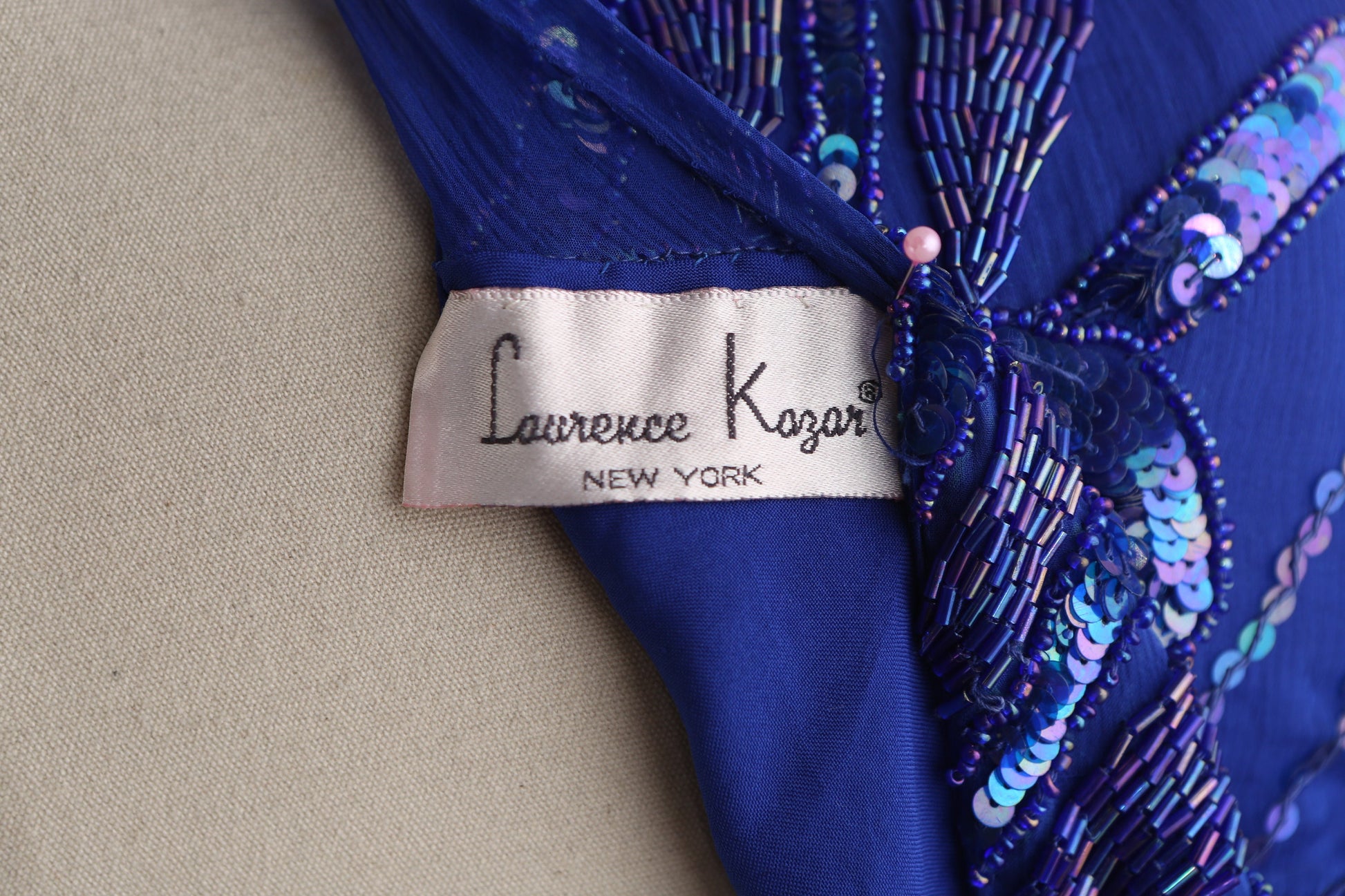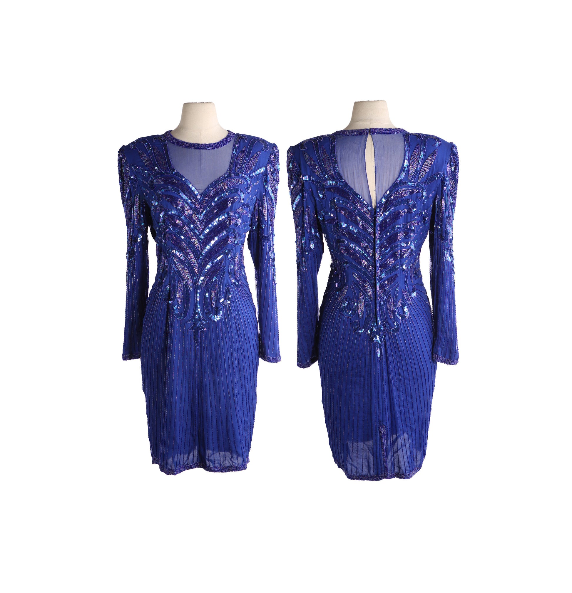 Vintage Women Blue Sequin Long Sleeve Evening Dress by Lauren Kagar