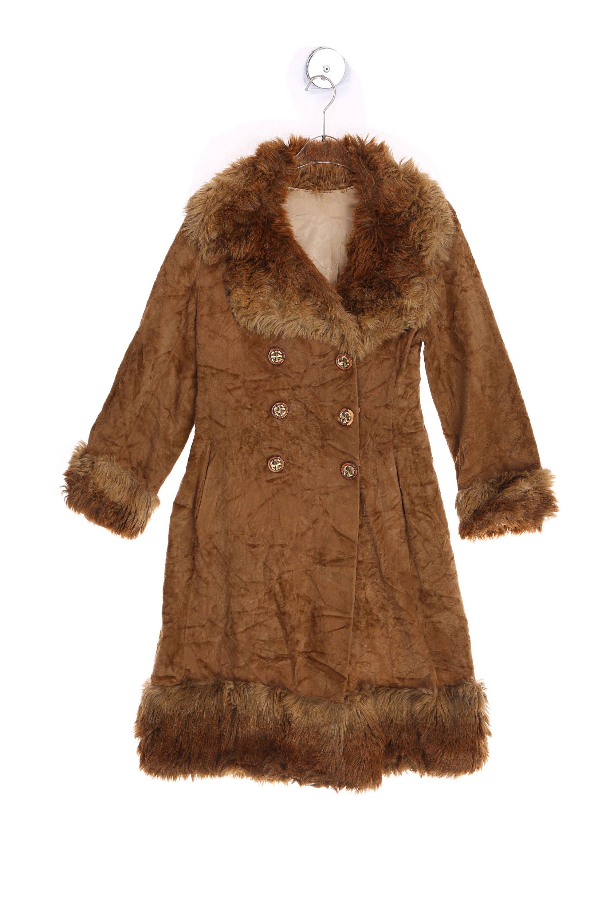 Vintage Women Brown Winter Coat with Faux Fur Collar - Estimated Era 1970's - 1980's