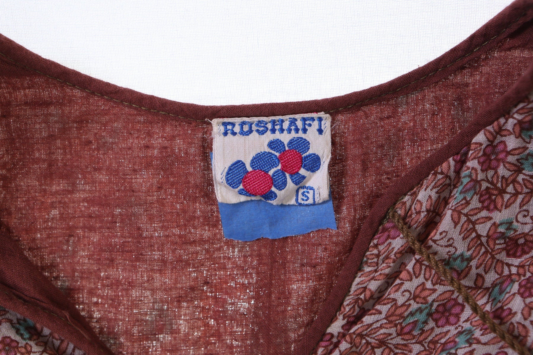 Vintage Women Floral Block Print Boho Pink and White Summer Dress