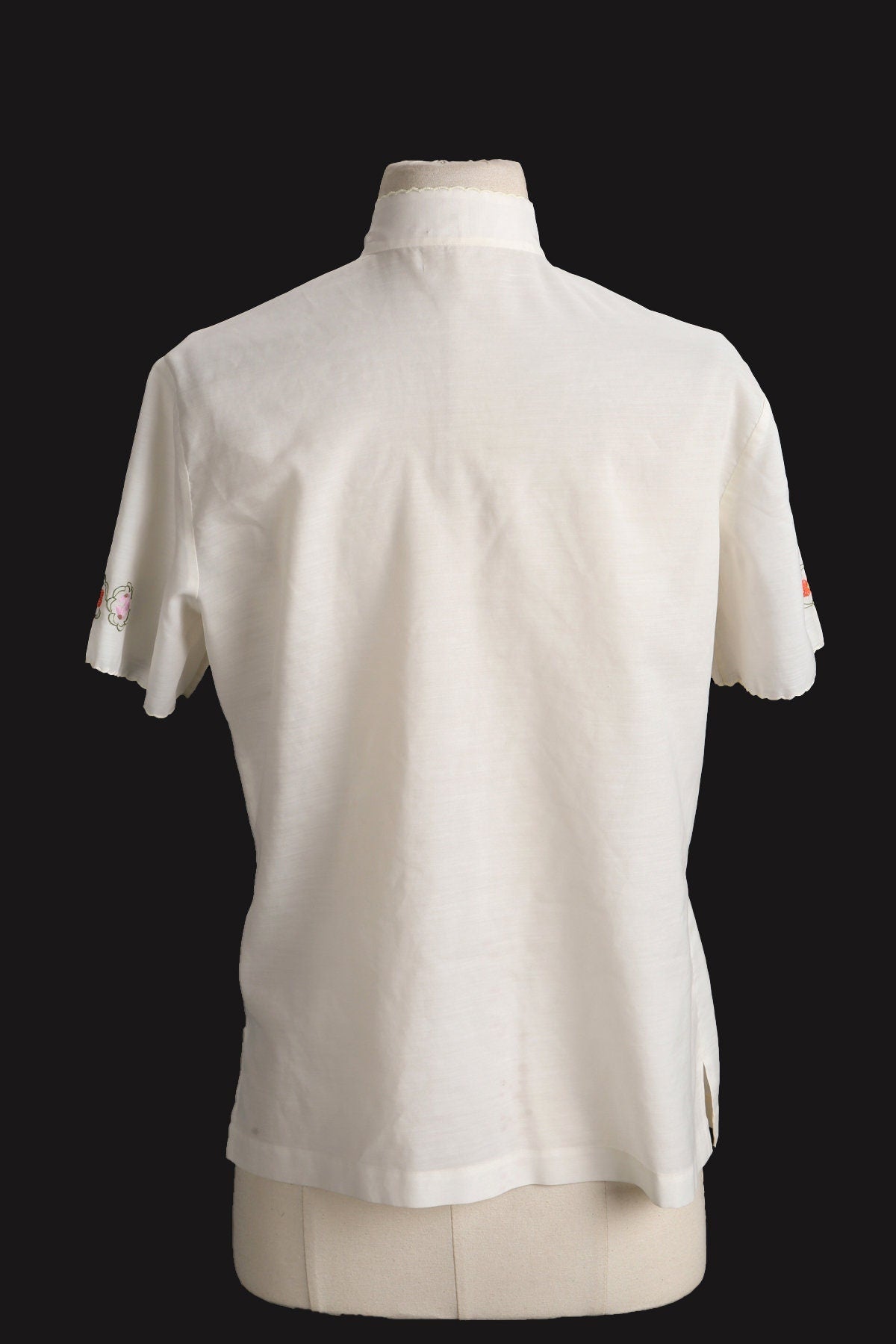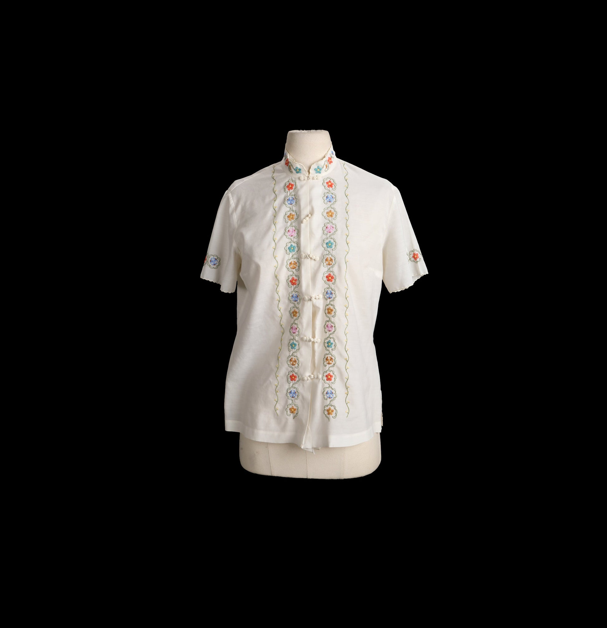 Vintage Women Floral Embroidered Cheongsam Top - Era 1970s - 1980s