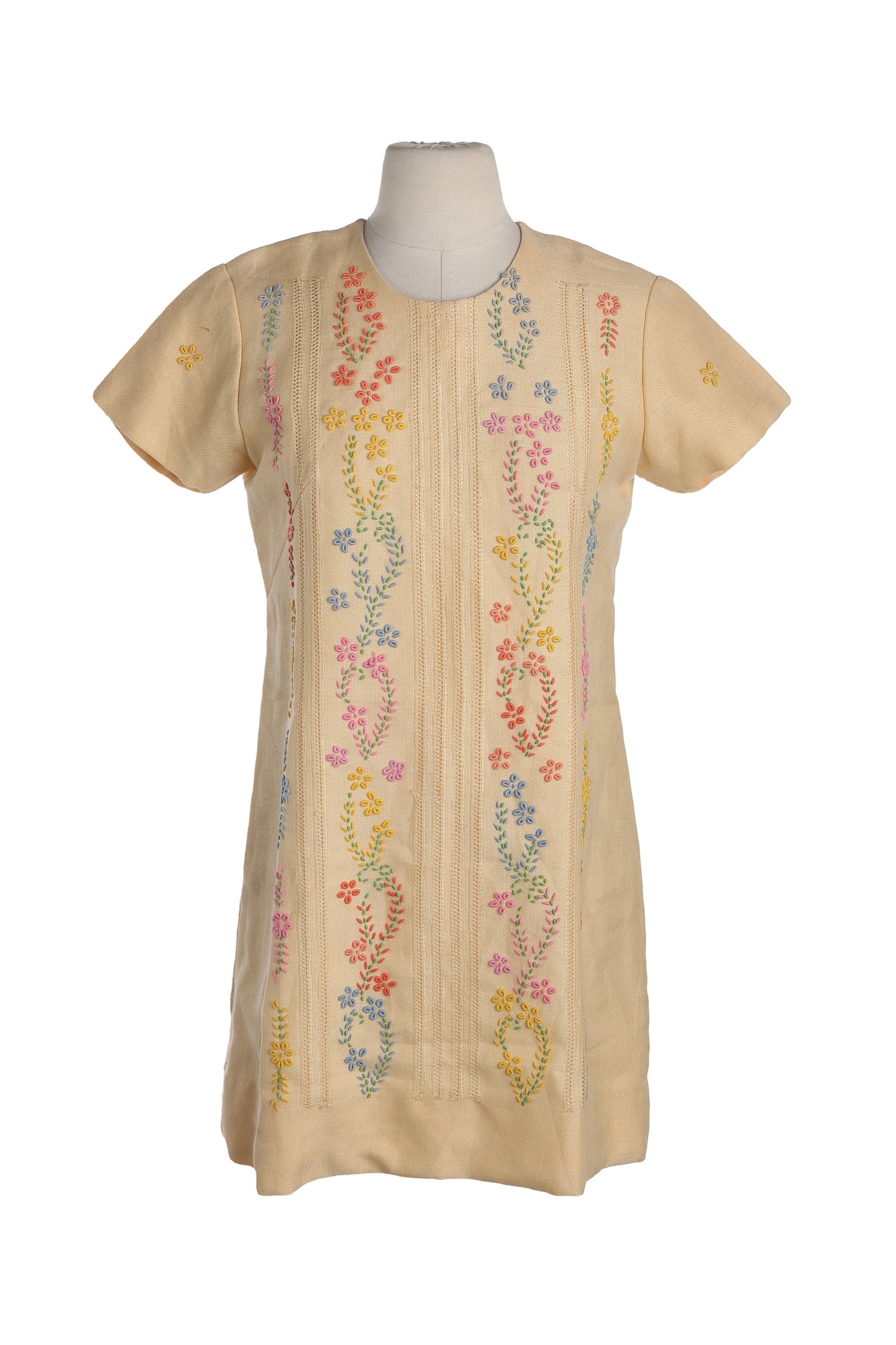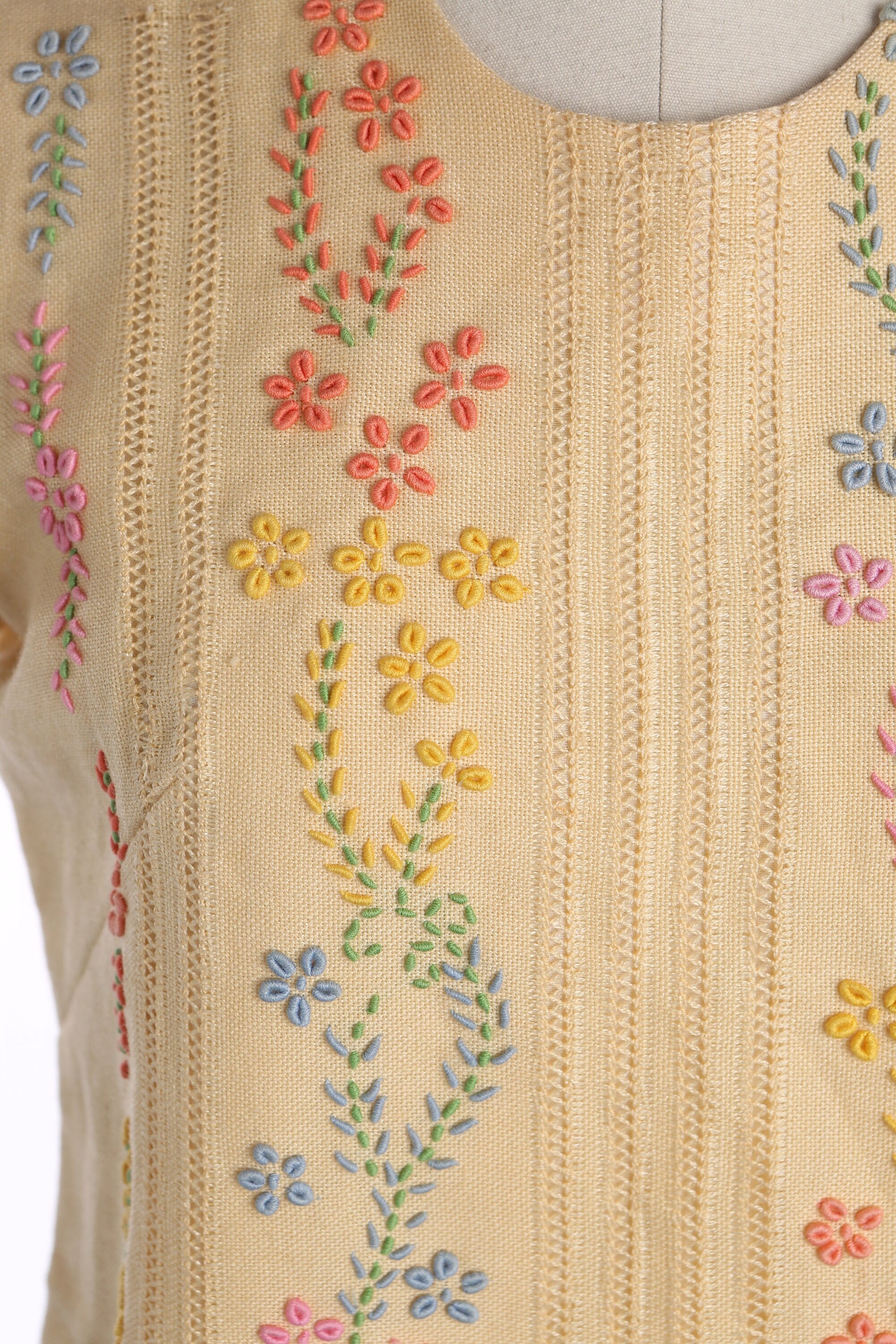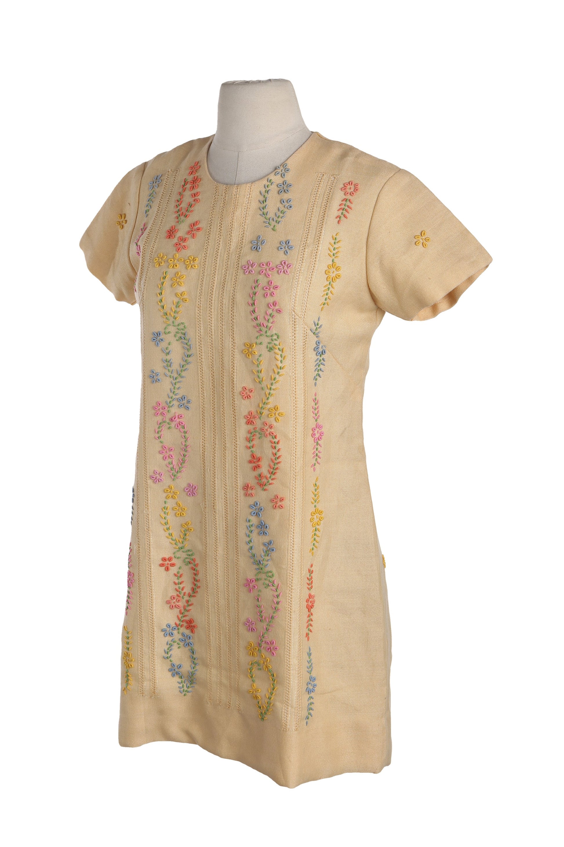 Vintage Women Floral Embroidery Yellow Mod Dress