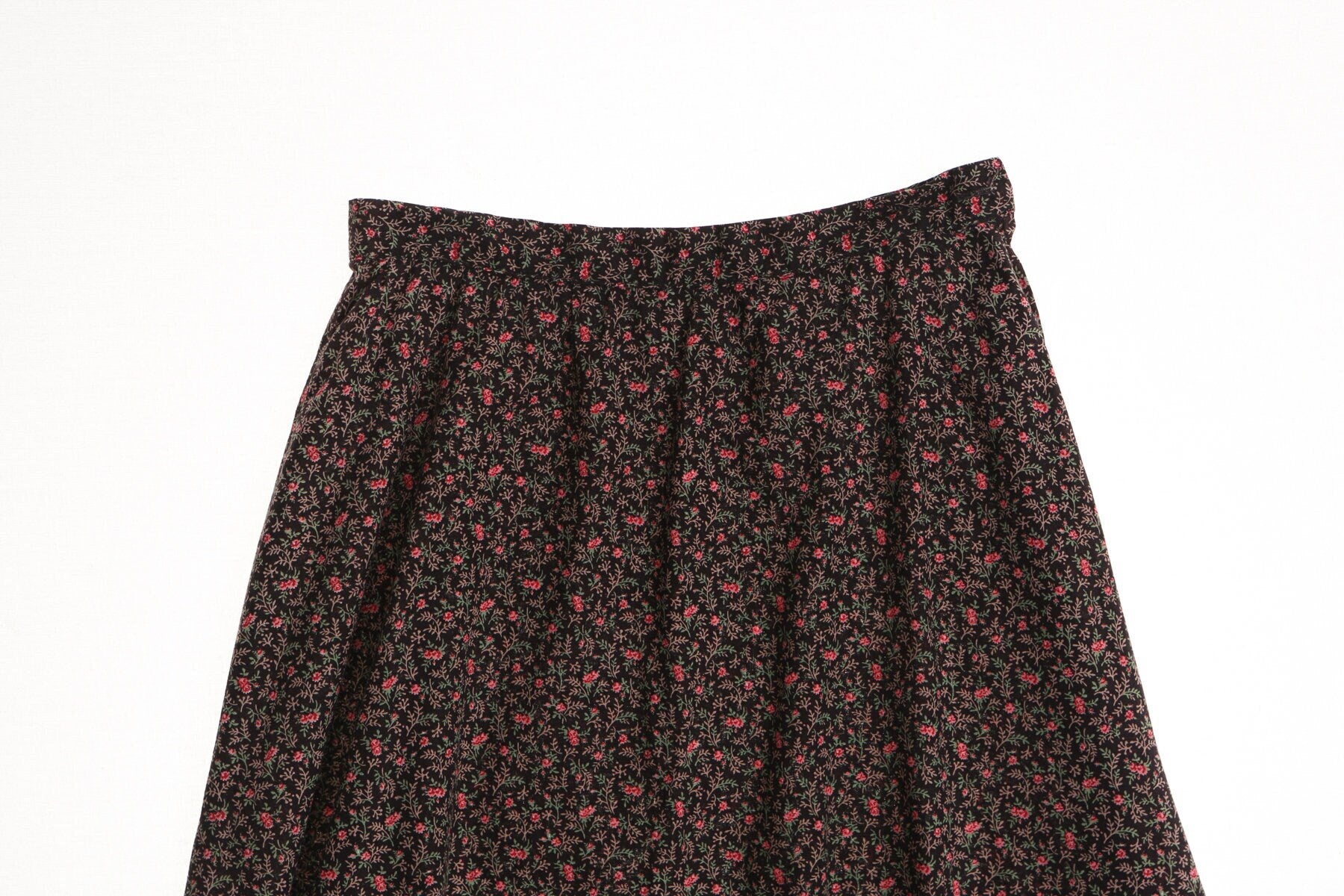 Vintage women floral print brown summer 80's 70's skirt peasant 50's