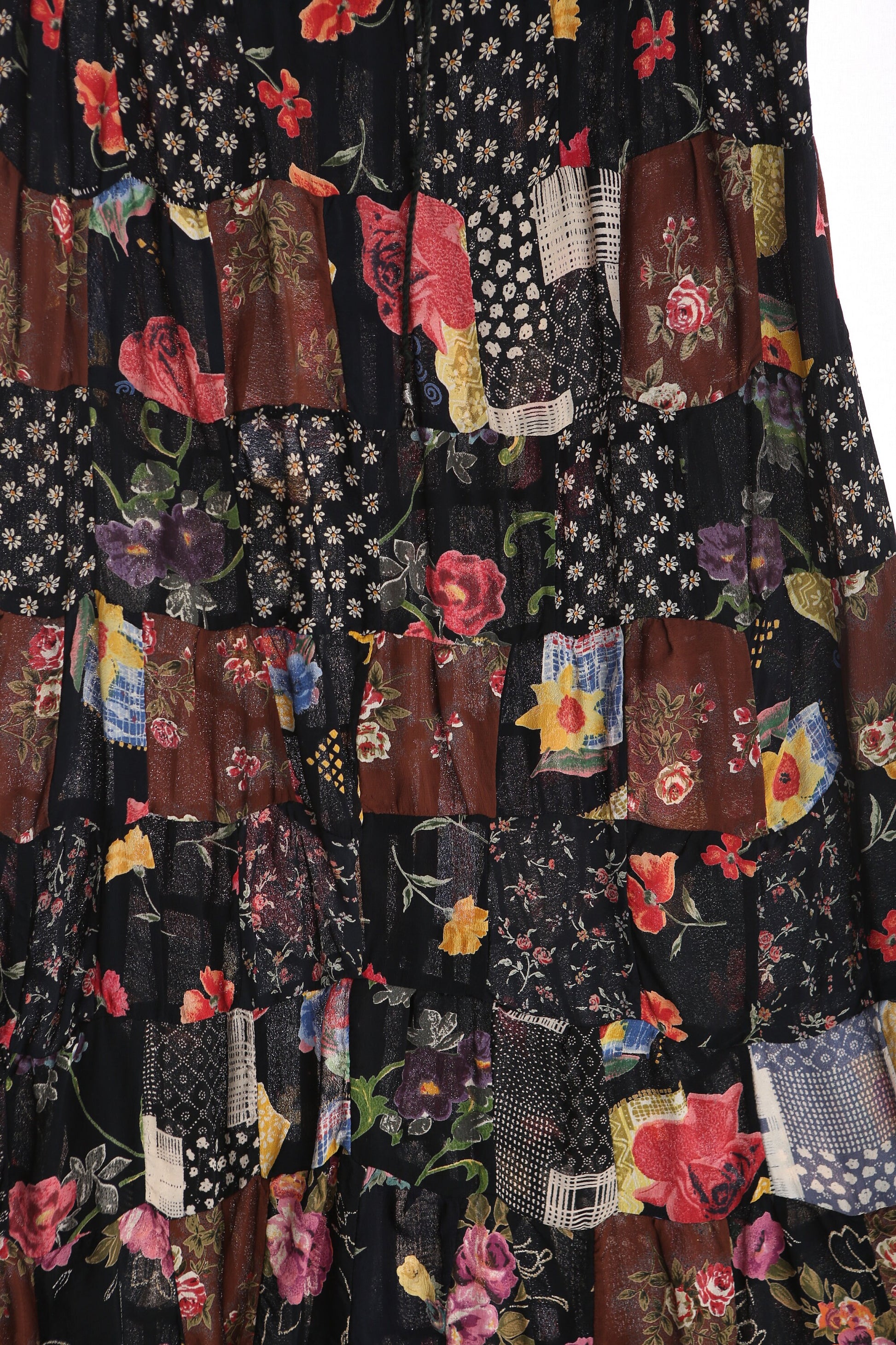 Vintage Women Floral Print Patchwork rayon Summer Skirt