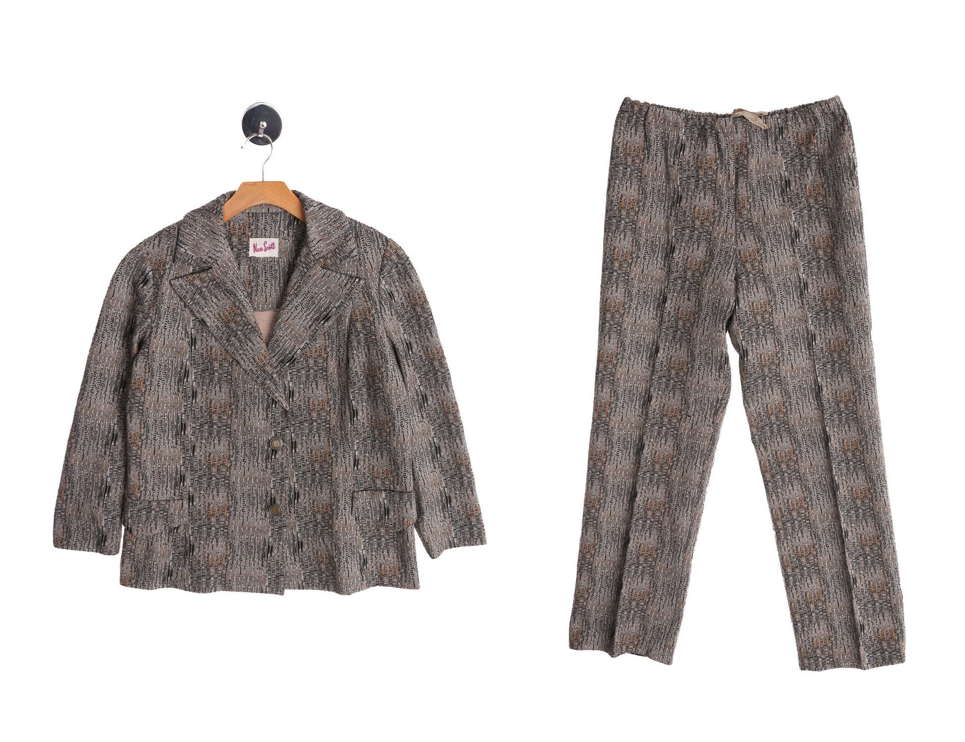 Vintage Women Gray Polyester Casual Suit - 2 Piece Suit