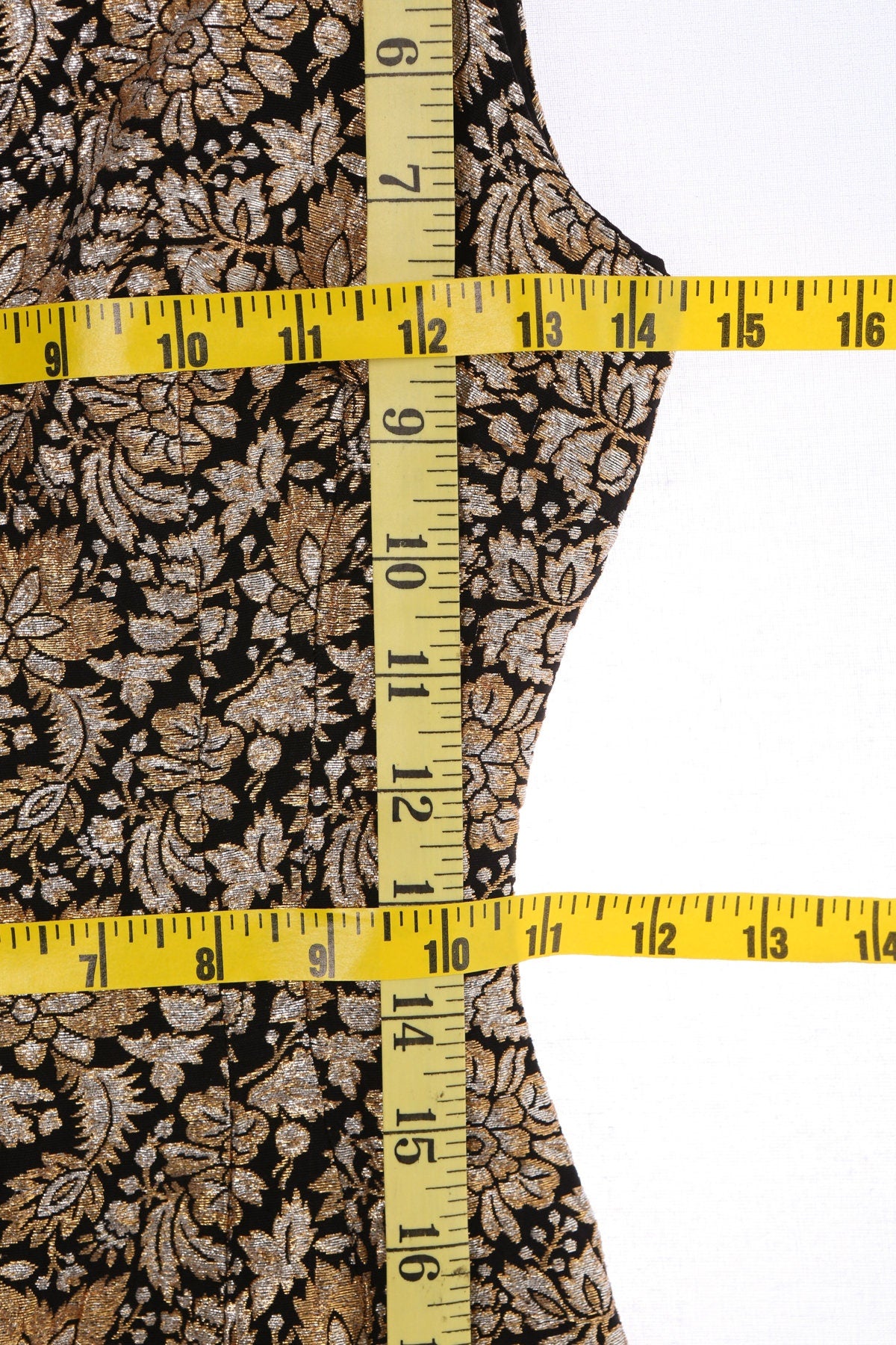 Vintage Women Metallic Golden Floral Embroidered Evening Dress