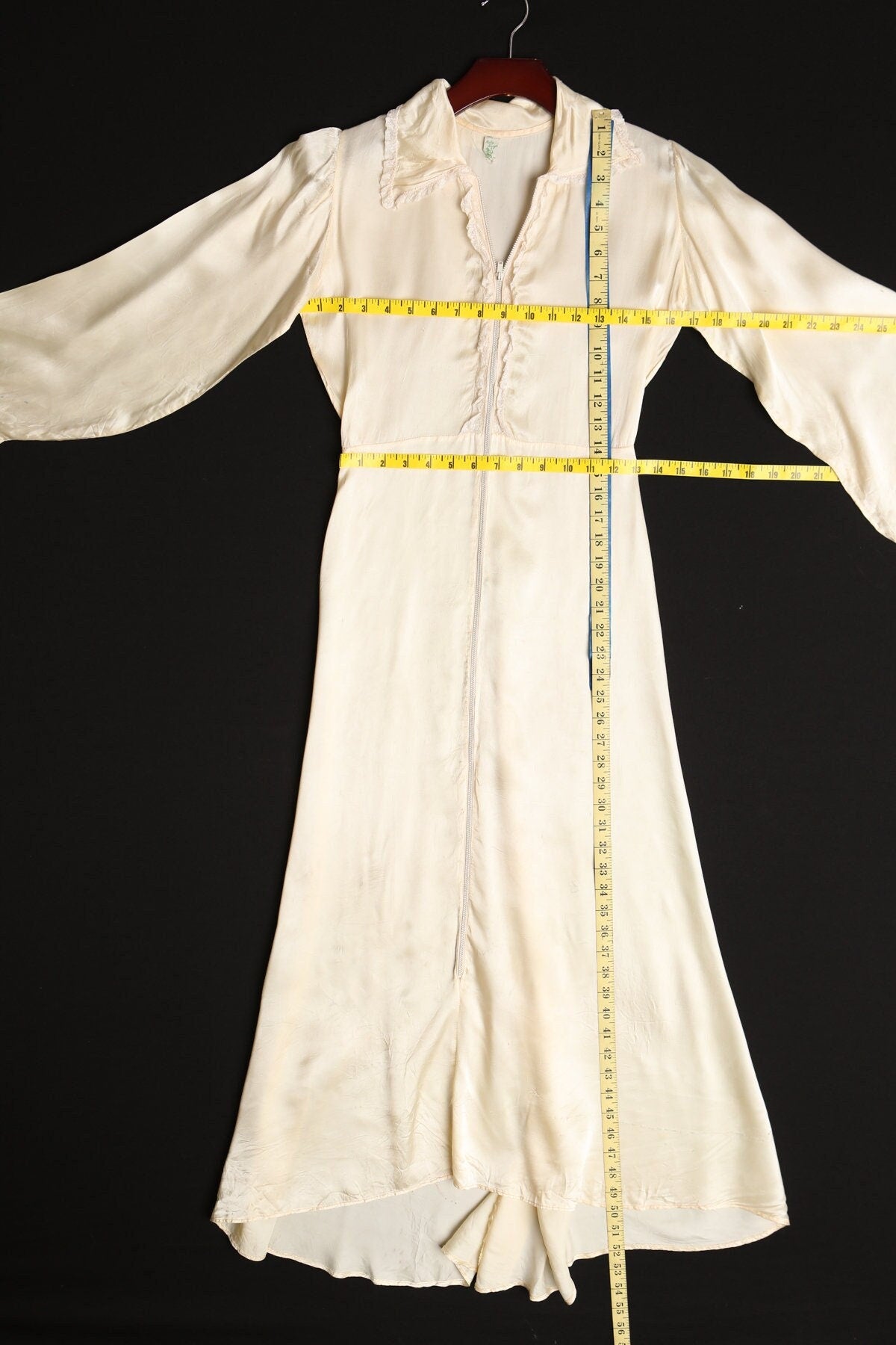 Vintage women nightgown dress beige 30's 40's zipper front vitorian