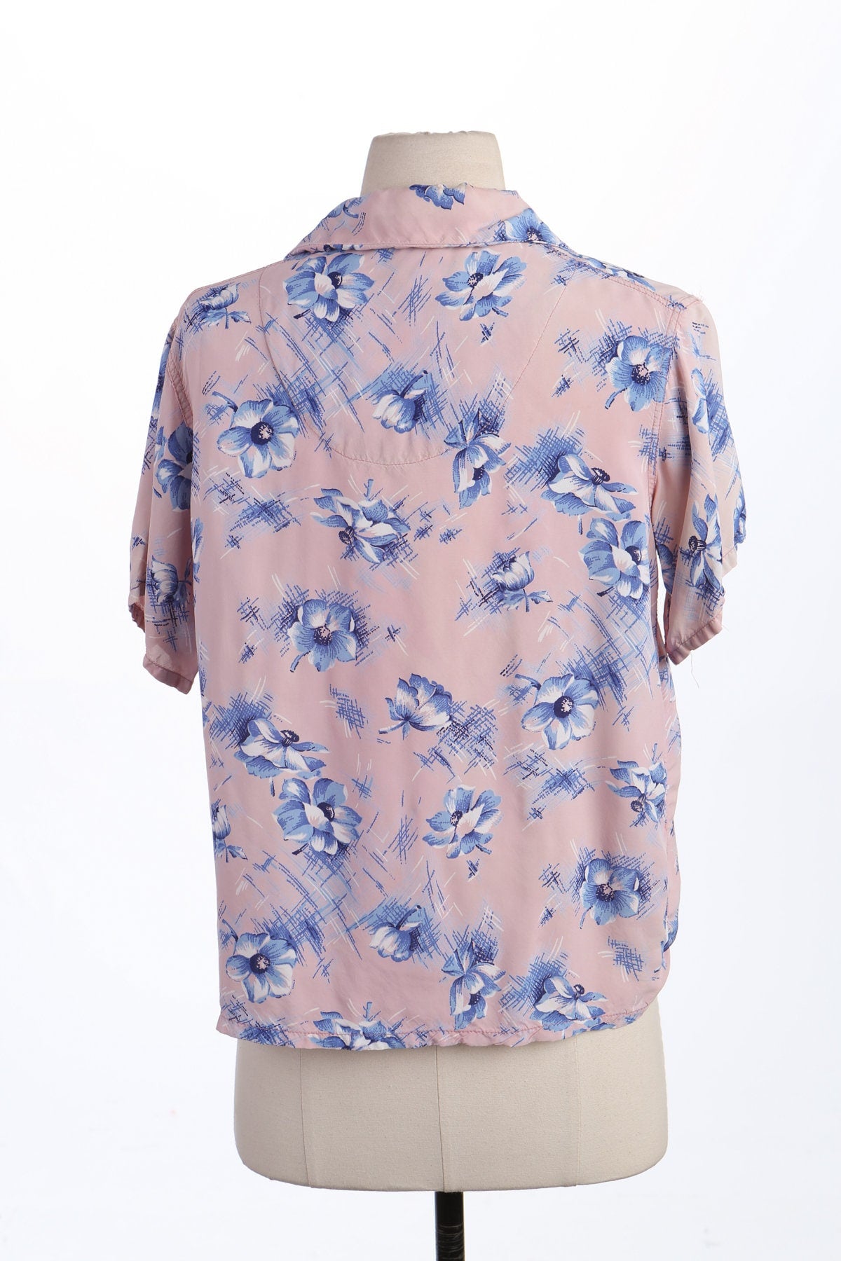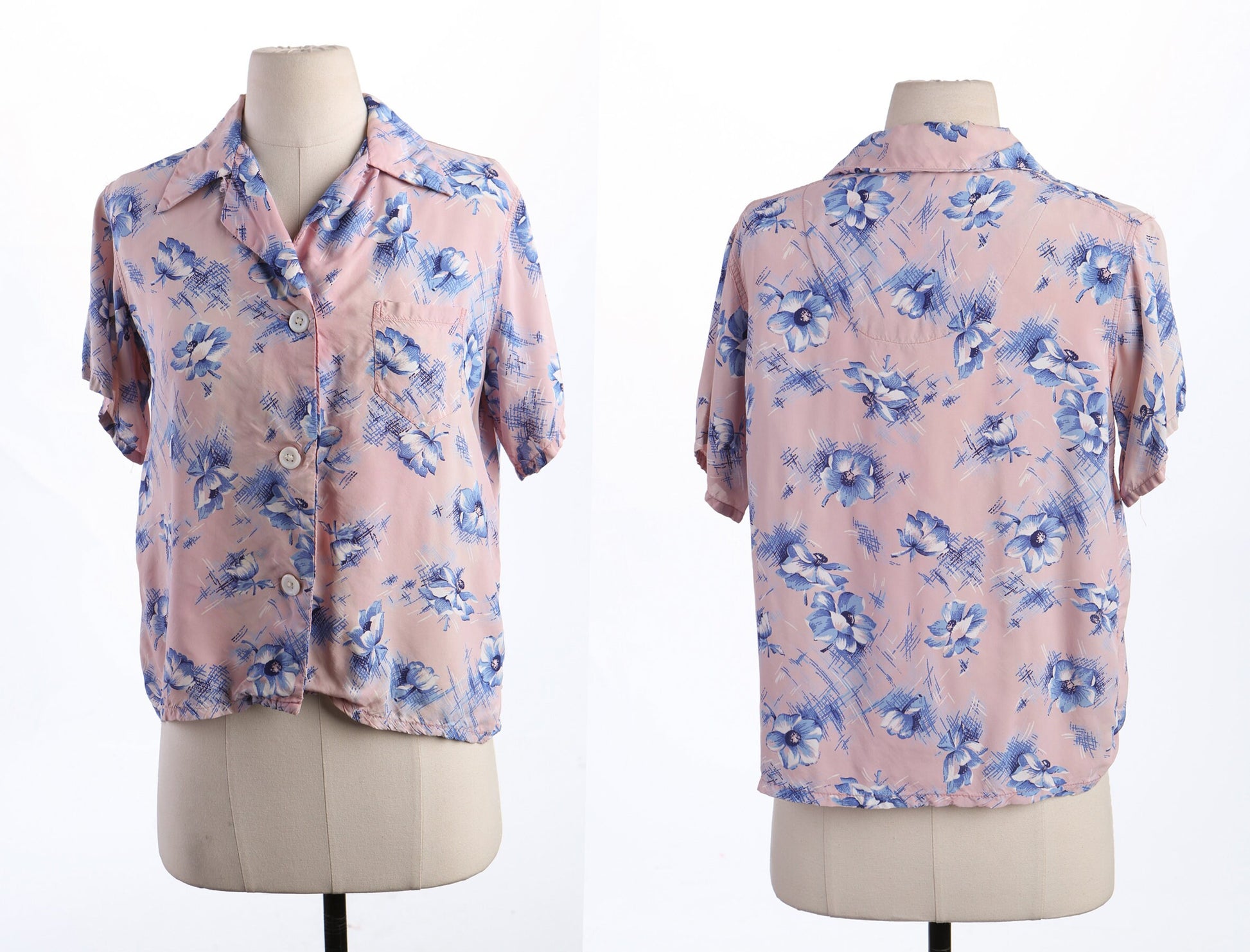 Vintage Women Pajama Floral Print Pink Blouse - Era (40's - 50's)