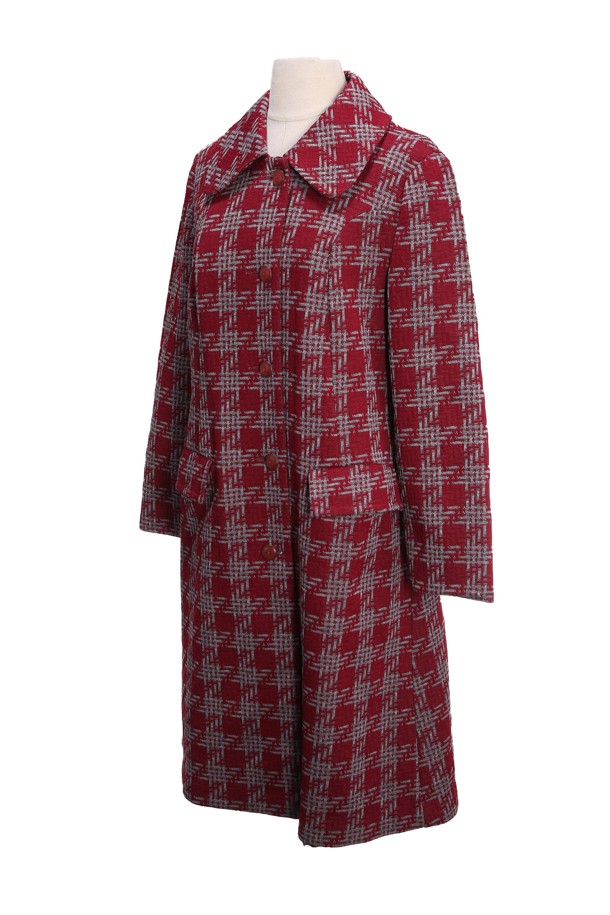 Vintage Women Red Plaid Casual Coat by Lanson - Estimated Era 1960's - 1970's