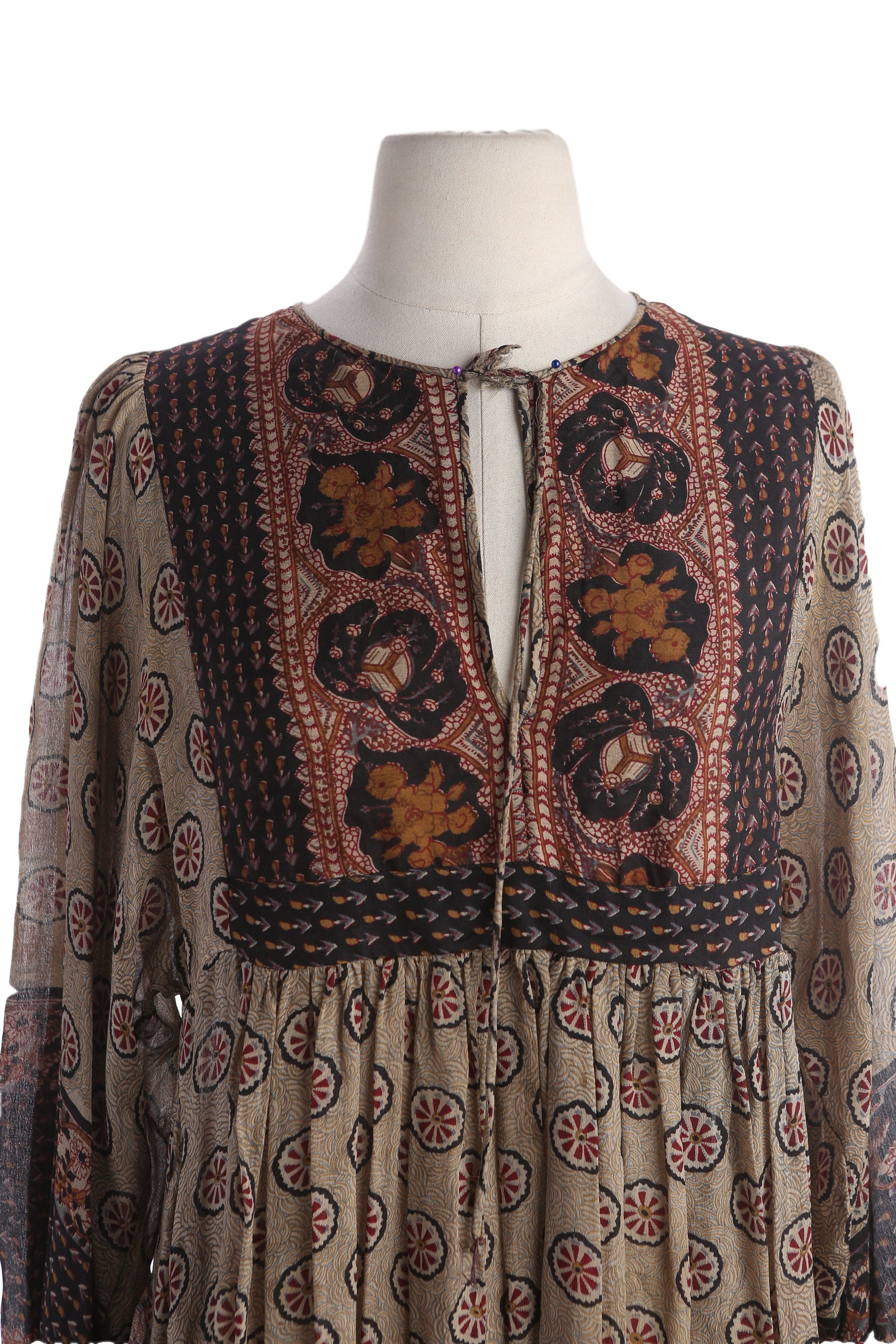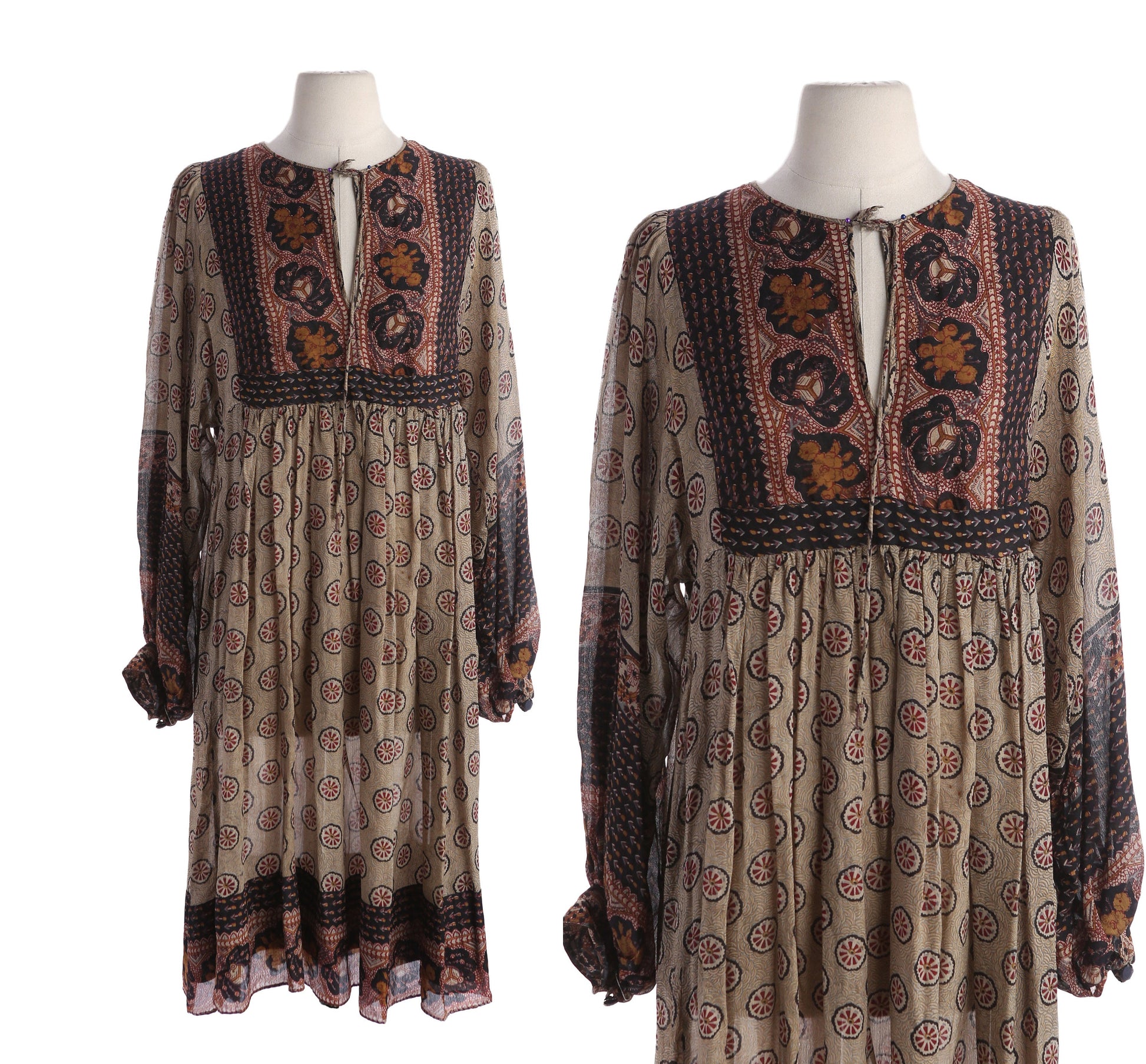 Vintage Women Silk Floral Hand Block Print Boho Dress by Phool - Estimated Era 1960's - 1970's