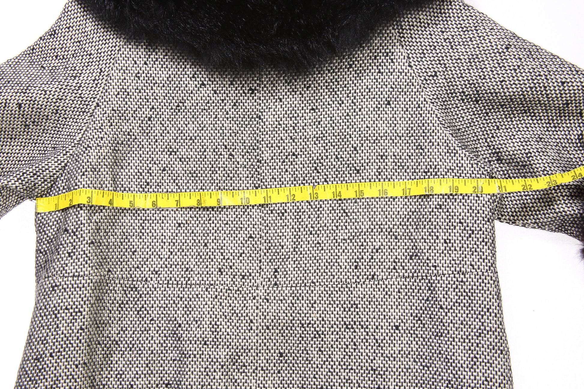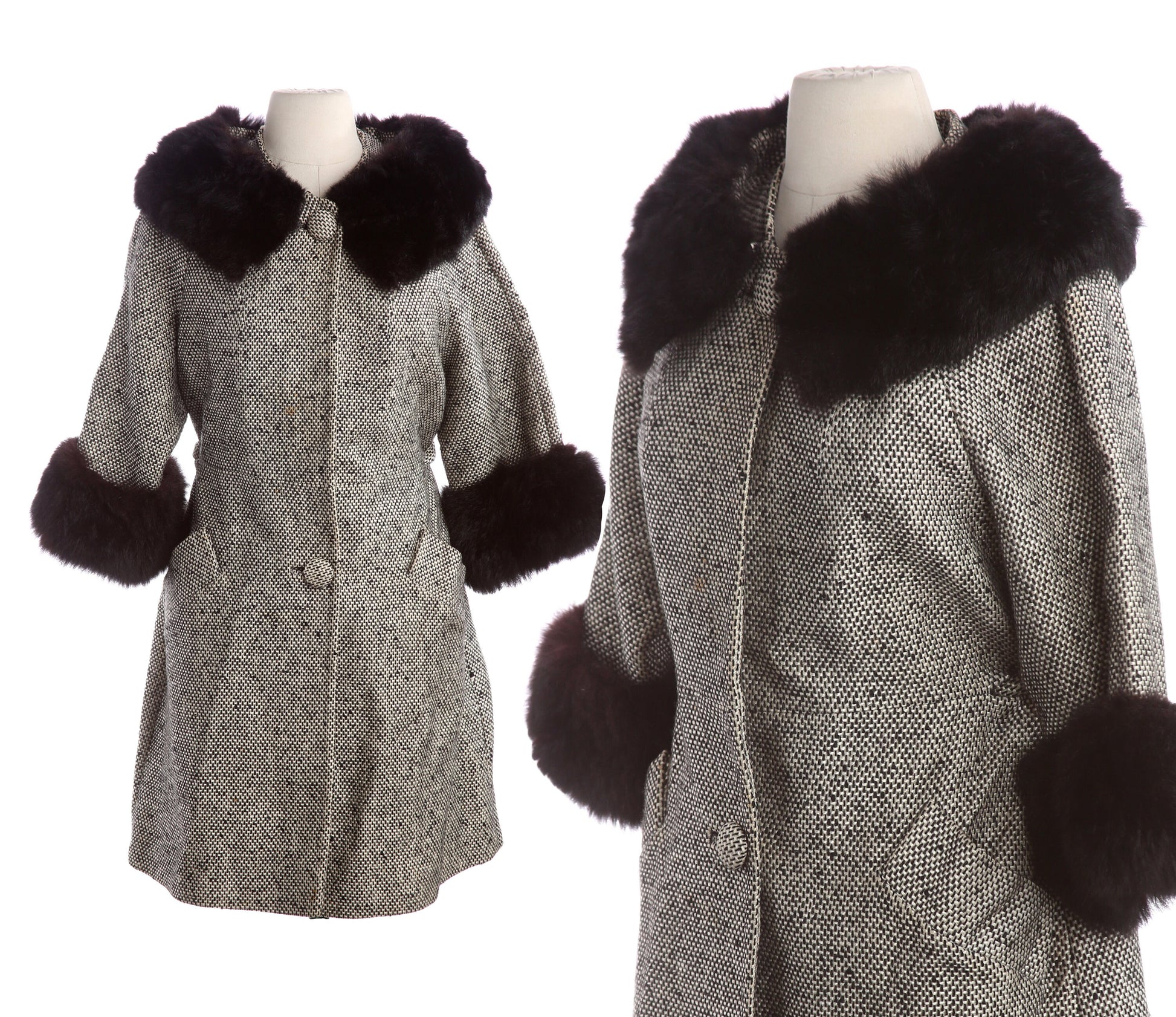Vintage Women White Plaid Winter Coat with Fur Collar - Estimated Era 1950's - 1960's