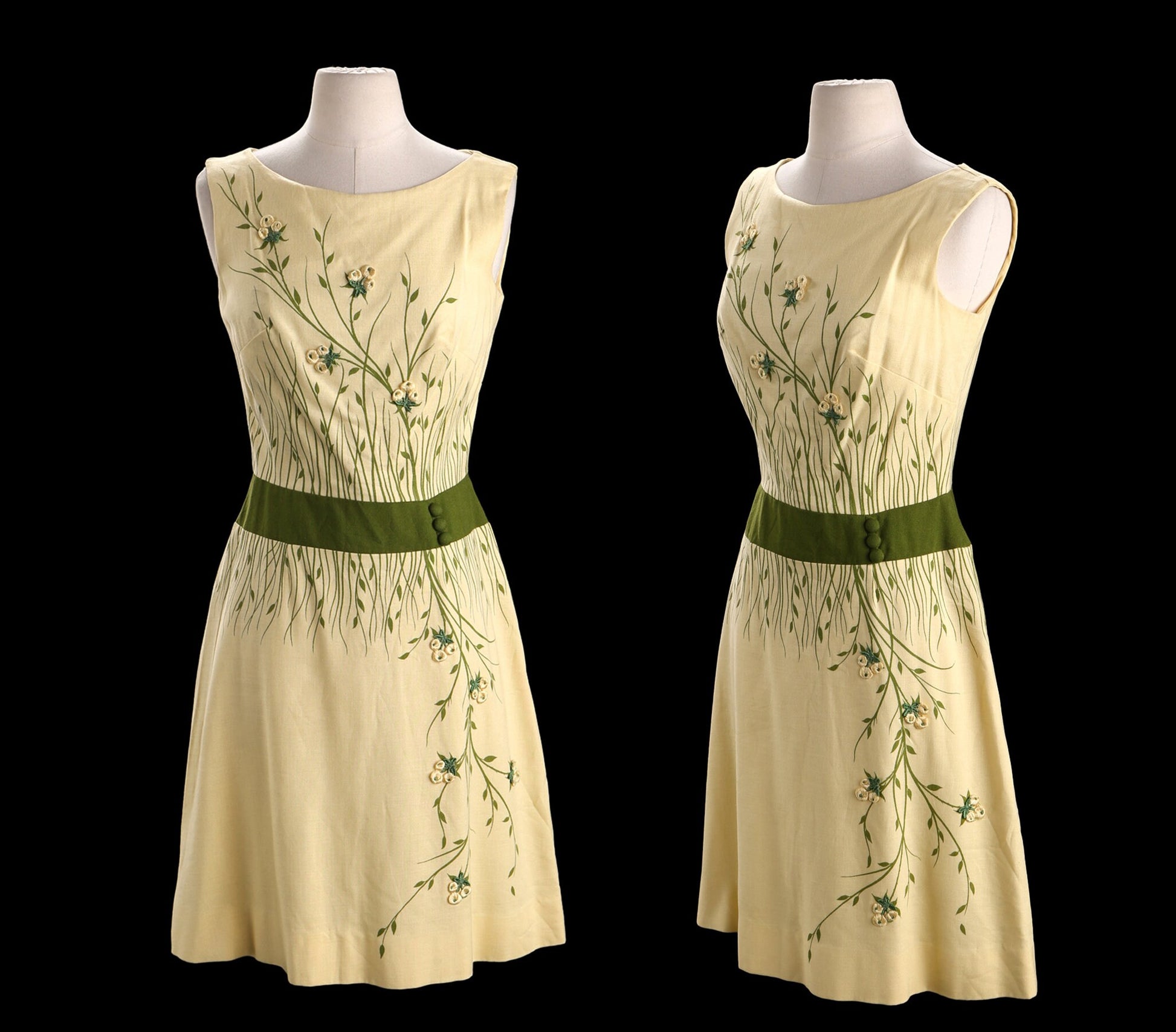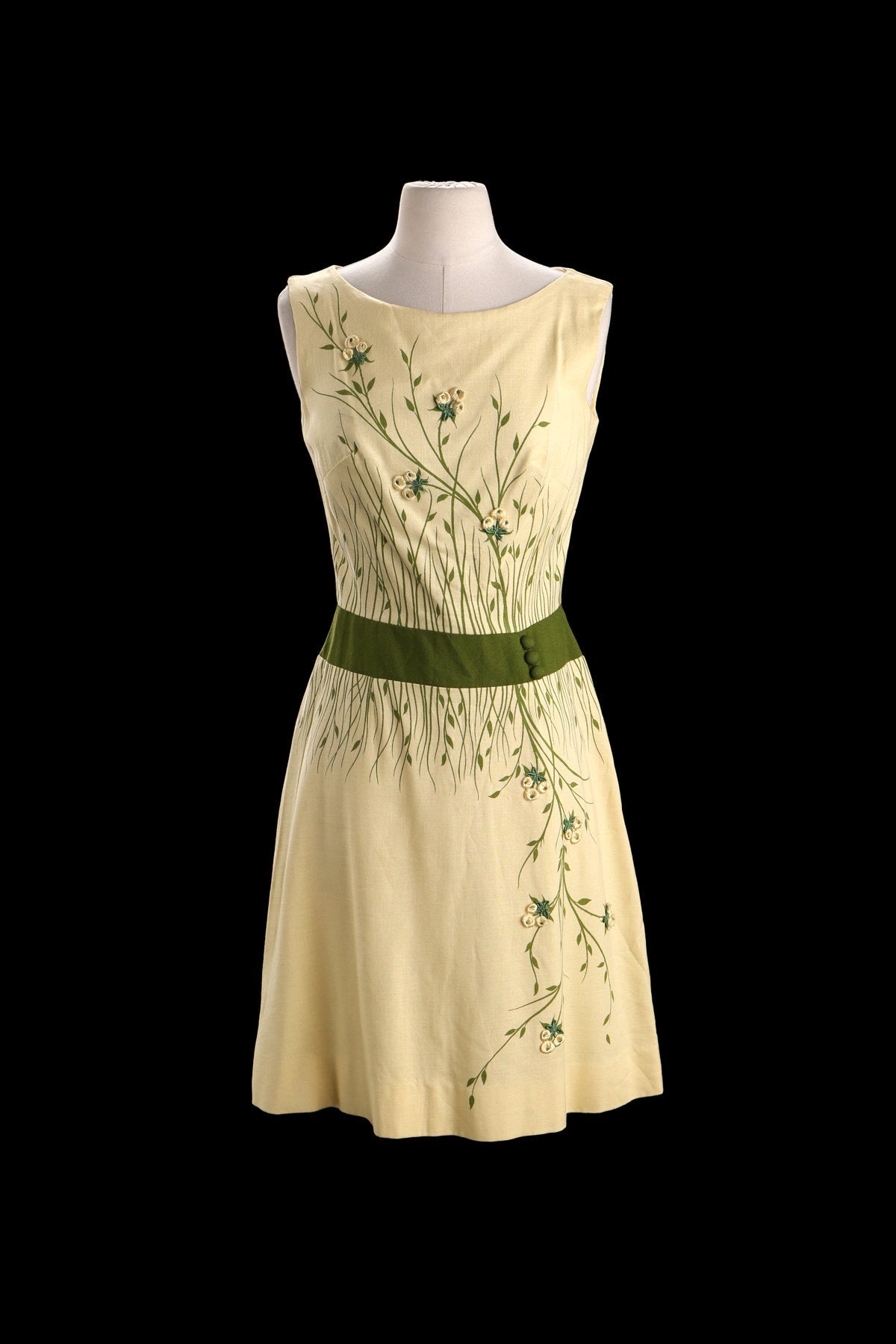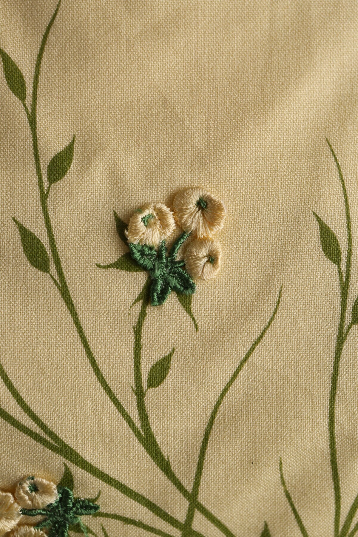 Vintage Women Yellow Casual Dress with Flower Embroidery Details