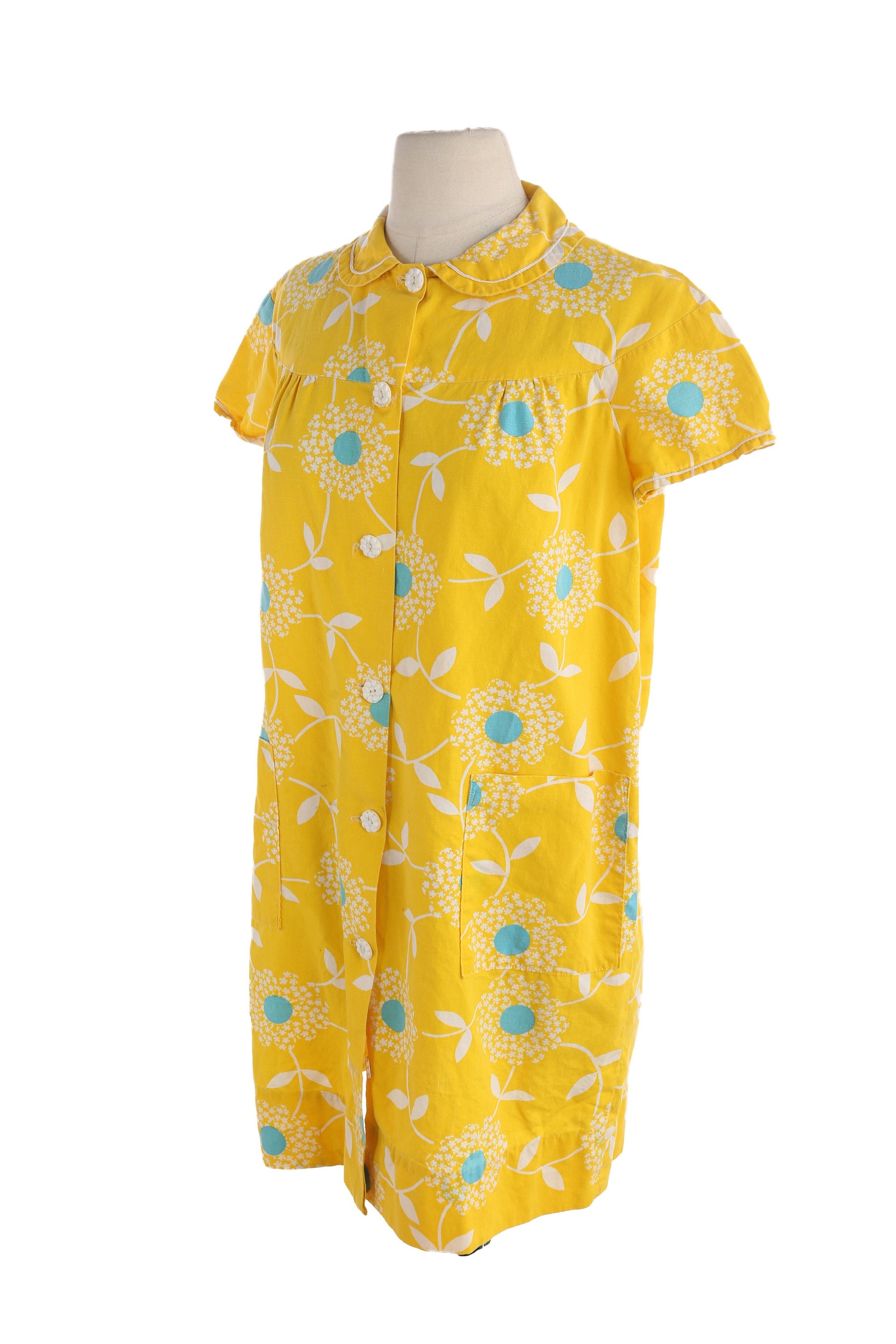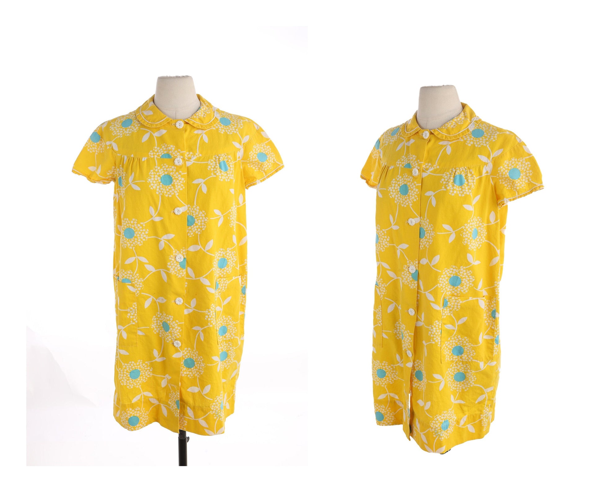 Vintage Women Yellow Floral Print Bluson Dress