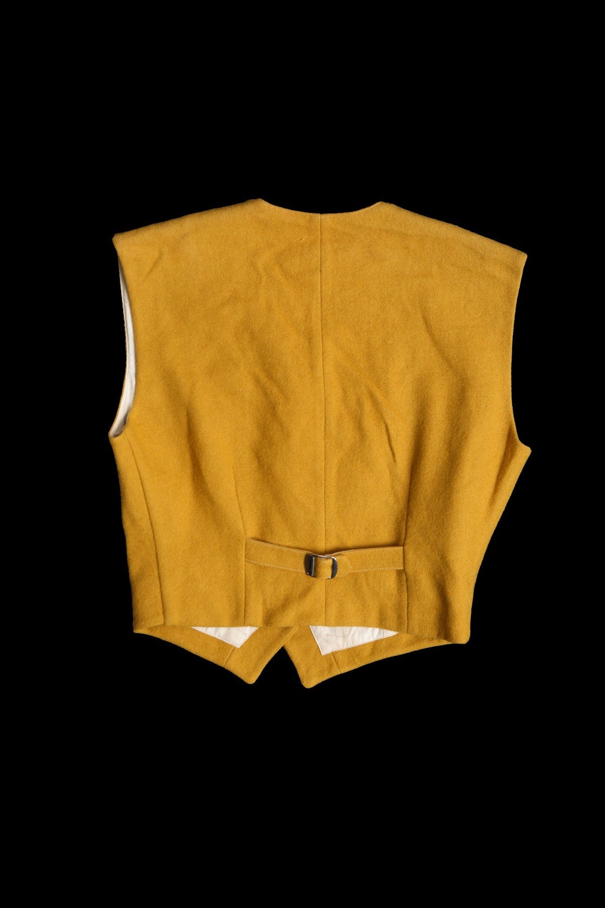 Vintage Women Yellow Flower Embroidered Two Piece Suit
