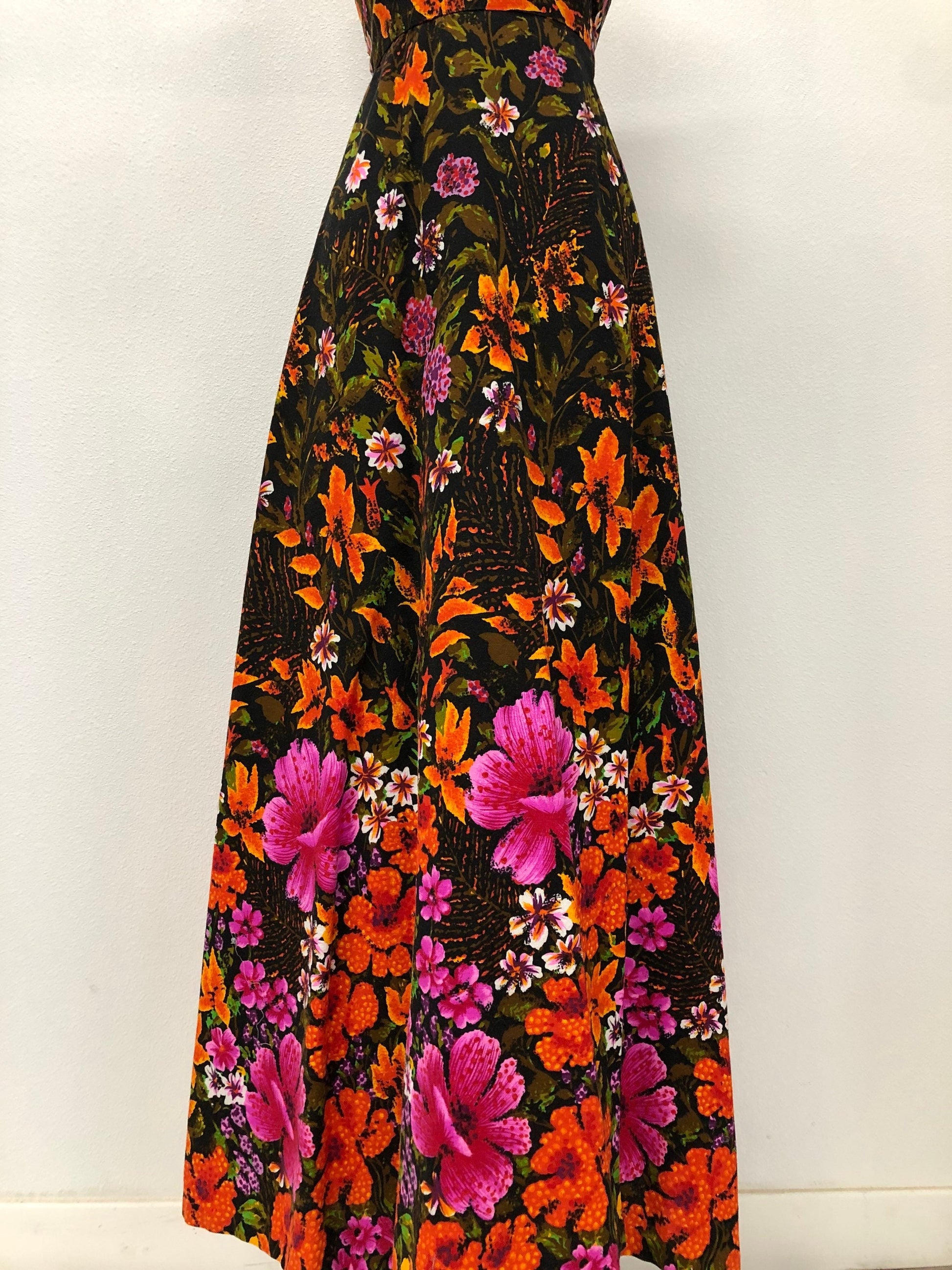 Wrap around summer yellow black long dress floral print hawaiian dress women vintage