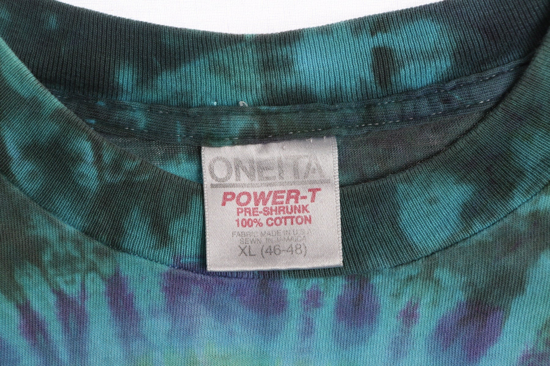 Ying Yang Acid Skull Face Green Tie Dye Graphic T-shirt